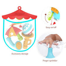 This battery-operated elephant fountain bath toy, along with four accessories, brings a circus vibe to bath time with surprising water effects and a spinning ball.