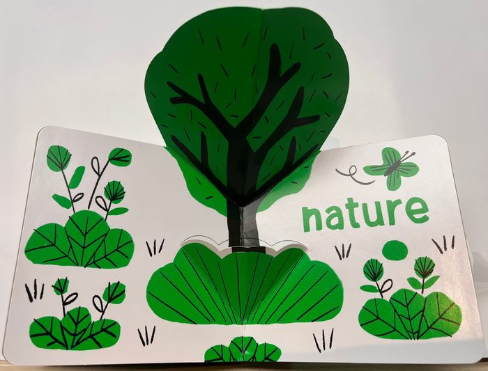 These sturdy, small books are absolutely perfect for little hands, but the clever and surprising images will appeal to all ages. Each spread is printed in black and white, but the pop-up object is filled in with a bold pop of color—a unique take on high-contrast books!