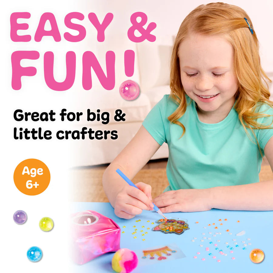Bubble Gems! Iridescent pearl art that POPS! If your kids enjoy diamond painting, crafting stickers and of course princess kitties, they will love this adorable mini backpack keychain! Featuring a kitty pearl pal that they can create, play with and tote around!