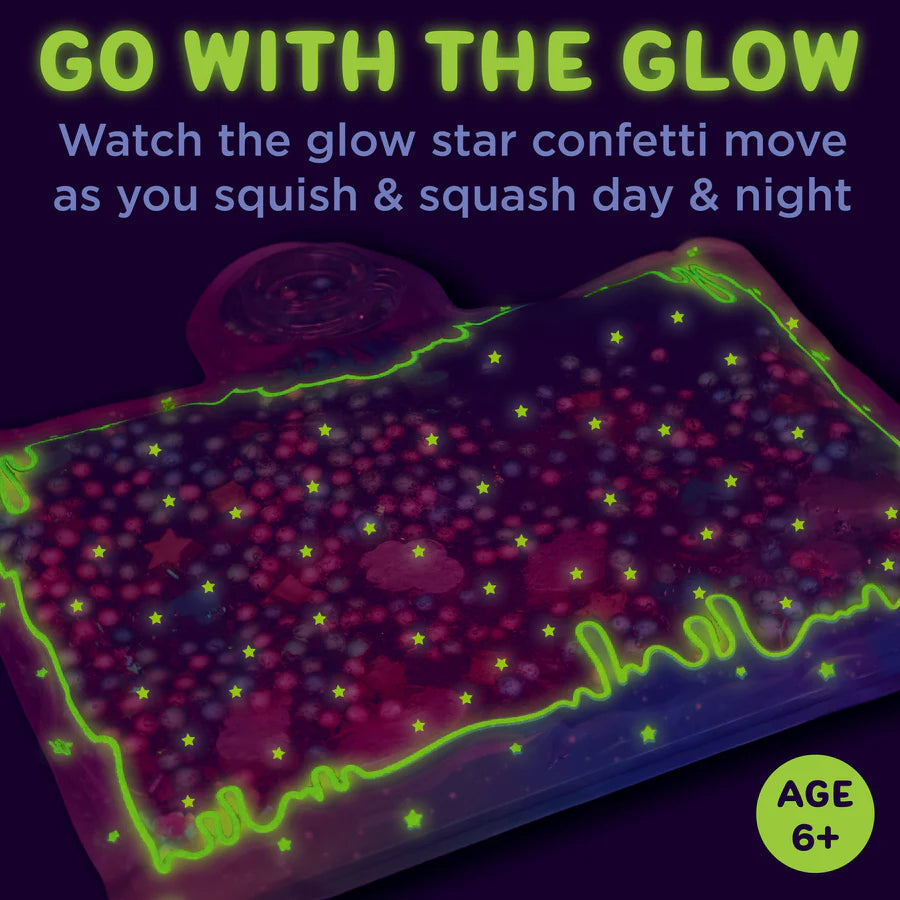 Add magic-mix capsules into the Super Squish Fidget Bag and watch as the colorful powder bursts into a super-slimy, tie-dye gel. Finish off your creation with unicorn-themed accents including: sparkle confetti, colorful foam beads, glow-in-the-dark confetti, unicorn, rainbow and star charms, glitter and more! It will take just a few minutes for the magic color capsules to absorb the water and become squishy.