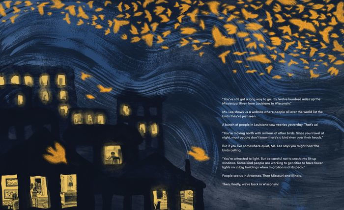 Every afternoon with their heads down and eyes closed, a fourth-grade class embarks on an imaginative migration journey alongside the bird they are studying. Guided by the voice of their teacher in the cool sanctuary of the classroom, the students travel all the way from Brazil to their hometown in Wisconsin. Along the way, they encounter weather, predators, setbacks, and loss.